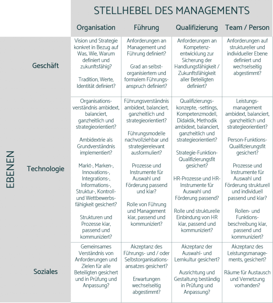 Zentrale unternehmerische Aufgaben aus Sicht der Ambidextrie