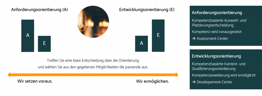 Die Berücksichtigung von Anforderungs- und Entwicklungsorientierung ist zum Einen eine organisationale Grundsatzentscheidung basierend auf dem eigenen Selbstverständnis. Zum Anderen ist die Priorisierung einer Orientierung oder deren Mischung immer auch abhängig von der jeweils aktuellen Arbeitsmarktlage und den eigenen Qualifizierungsmöglichkeiten.