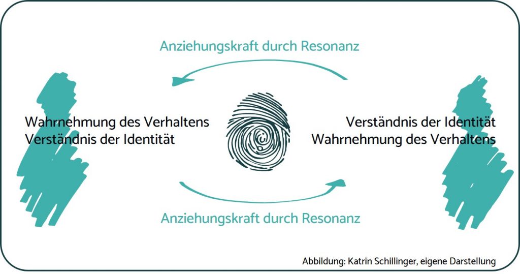 Identitätsbildung ist ein lebendiger wechselseitiger Wahrnehmungs-, Interpretations- und Handlungsprozess. Identität wird über Verhalten jeglicher Art zum Ausdruck gebracht. Auf den Wesenskern bezogene Handlungen werden dabei jeweils wechselseitig registriert, bewertet, mit sich selbst als stimmig akzeptiert oder eben auch nicht. Bei allem was Organisationen und Menschen tun, fragt sich der Beteiligte stets bewusst oder unbewusst: Worauf verweist das? Was sagt mir das über mich, über den Anderen? Was davon passt zu mir und was nicht?